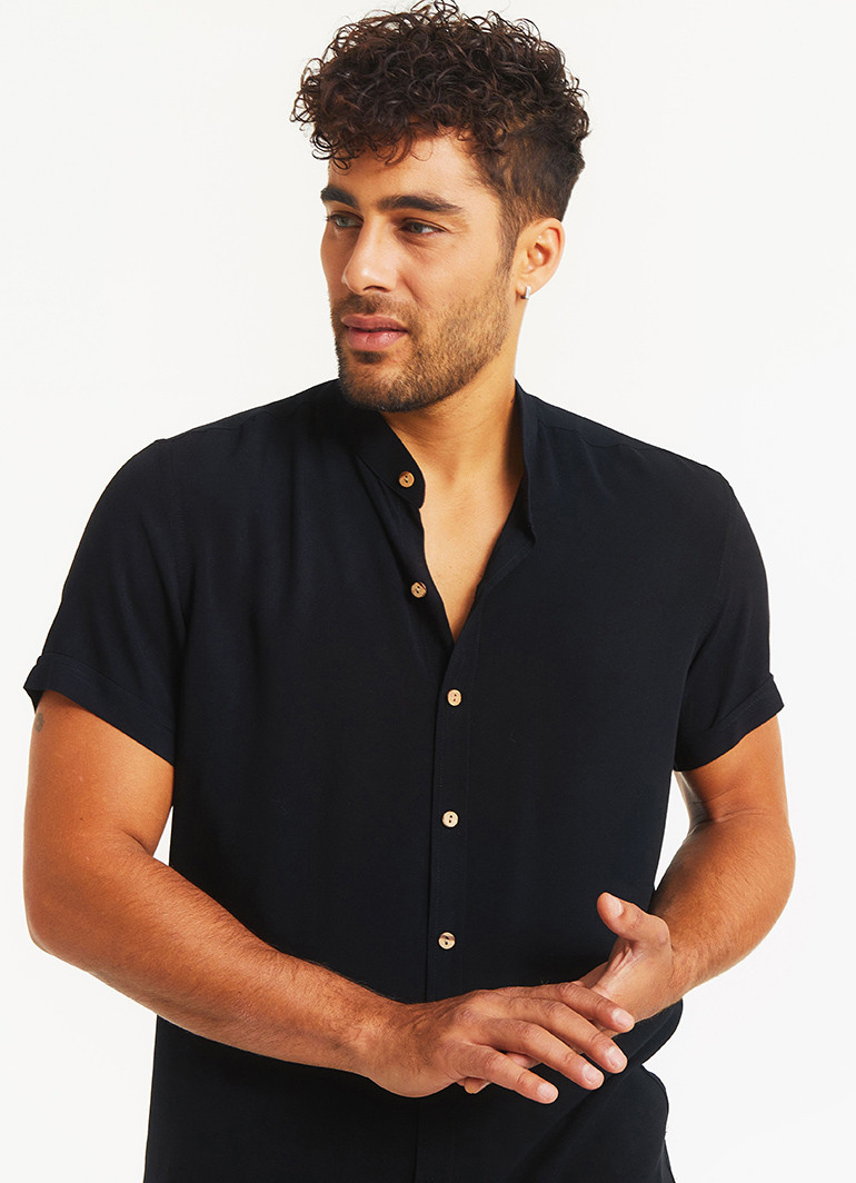 Coconut Button Down, Earthy Colors Printed, Mandarin Collar Mens Shirt