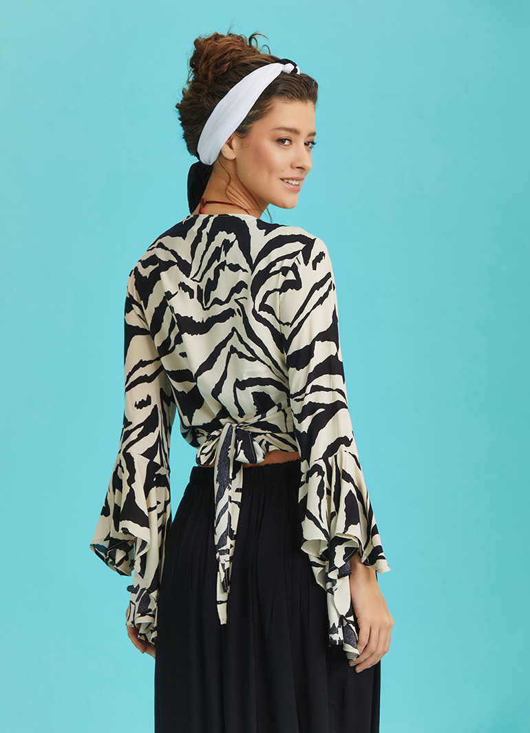 V Neckline, Long Bell Sleeve, Gypsy Style, Wrap Around Crop Top