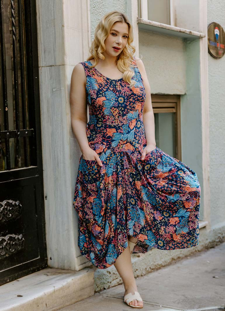 Sleeveless, Scoop Neck, Pocket Detailed, Boho Style, Plus Size Dress