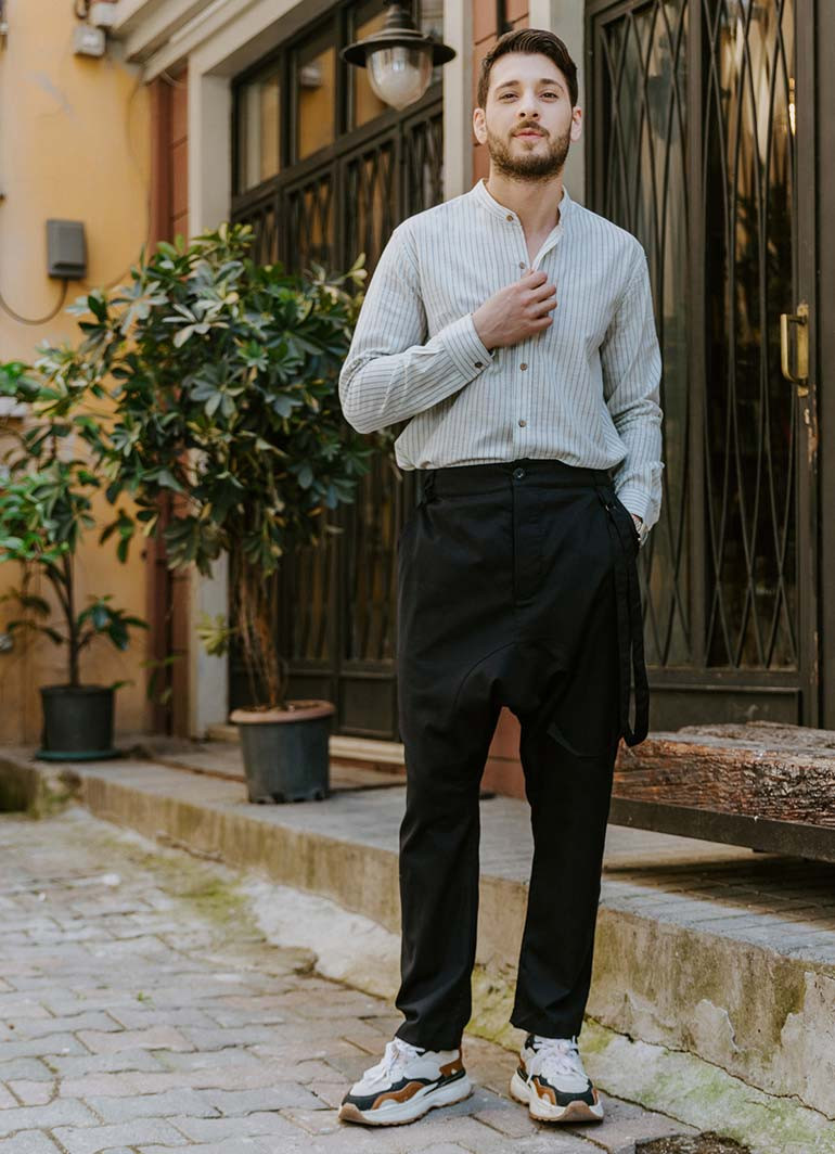 Bohemian Cotton Black Mens Harem Pants