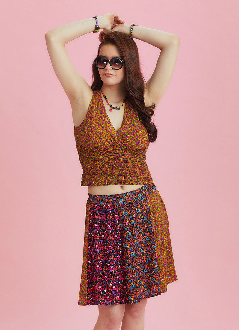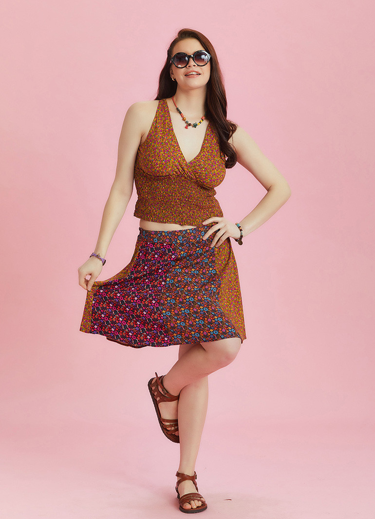 Easy Pull-On Elastic Waist, Flared, Patchwork Mini Skirt