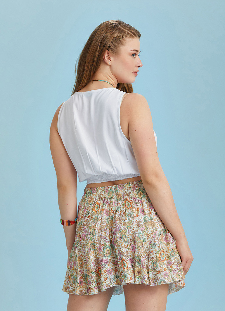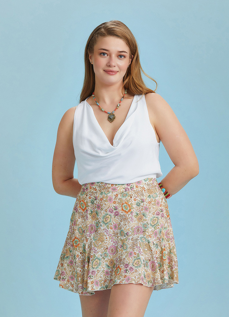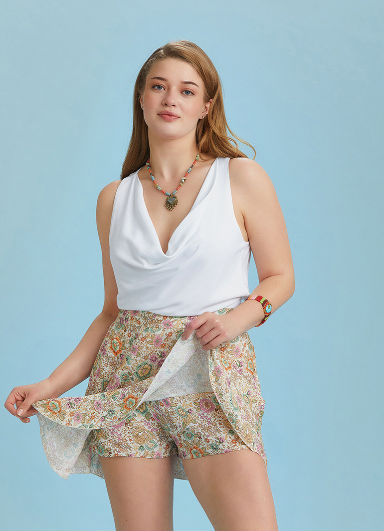 Boho Chic Style Print Ruffled Plus Size Skort