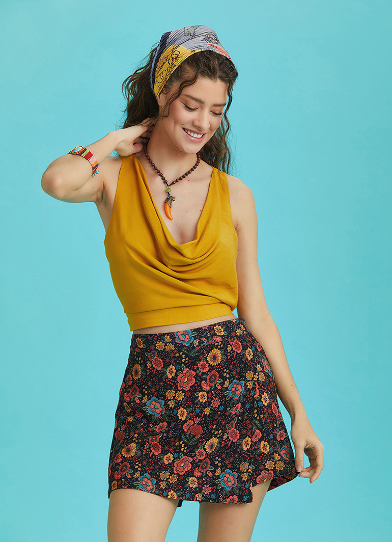 Elastic Back Waistband, Mid Rise, Wrap Front Detail, Mini Skort