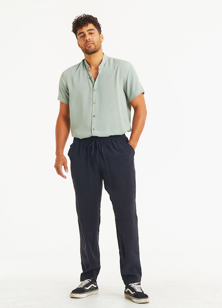 Comfortable Cut Black Mens Trousers With Elastic Waist