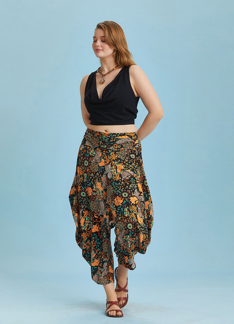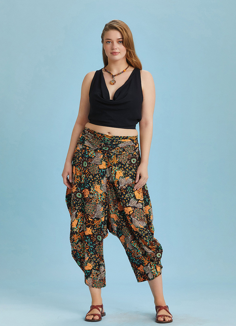 Draped Waist, Medium Rise, Ankle Lenght, Baggy Harem Pants, Plus Size Pants