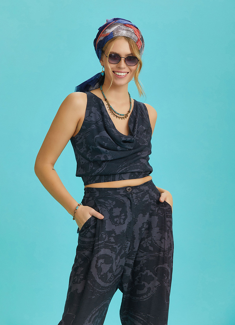 Cowl Necklined, Elastic Hem Detail, Sleeveless, Boho Crop Top