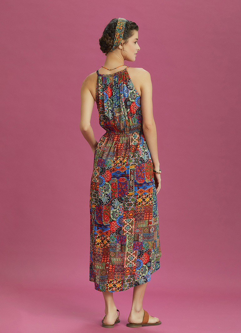 Ethnic Patterned Halter Neck Summer Dress