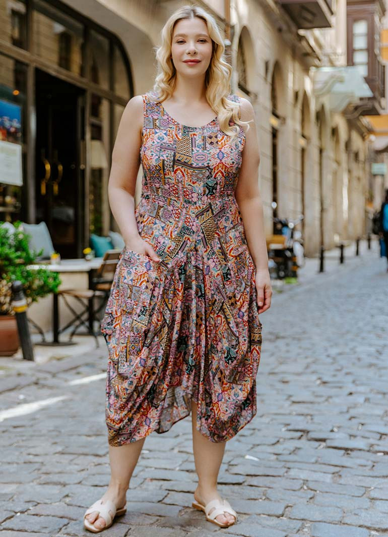 Sleeveless, Scoop Neck, Pocket Detailed, Boho Style, Plus Size Dress
