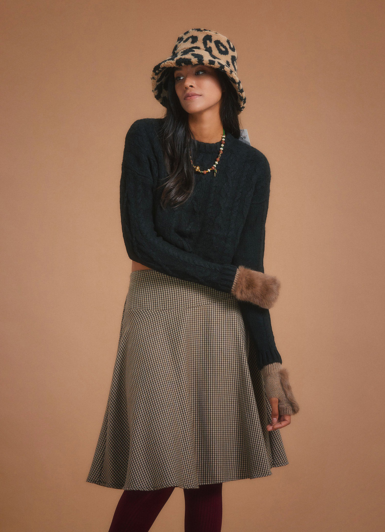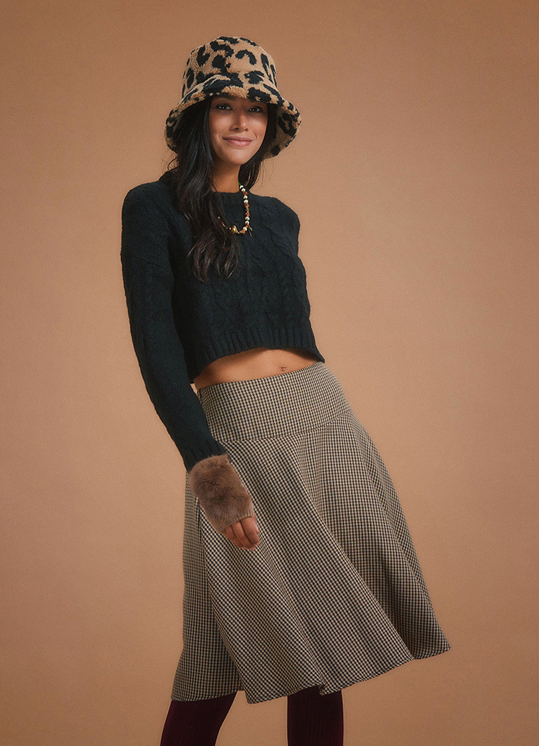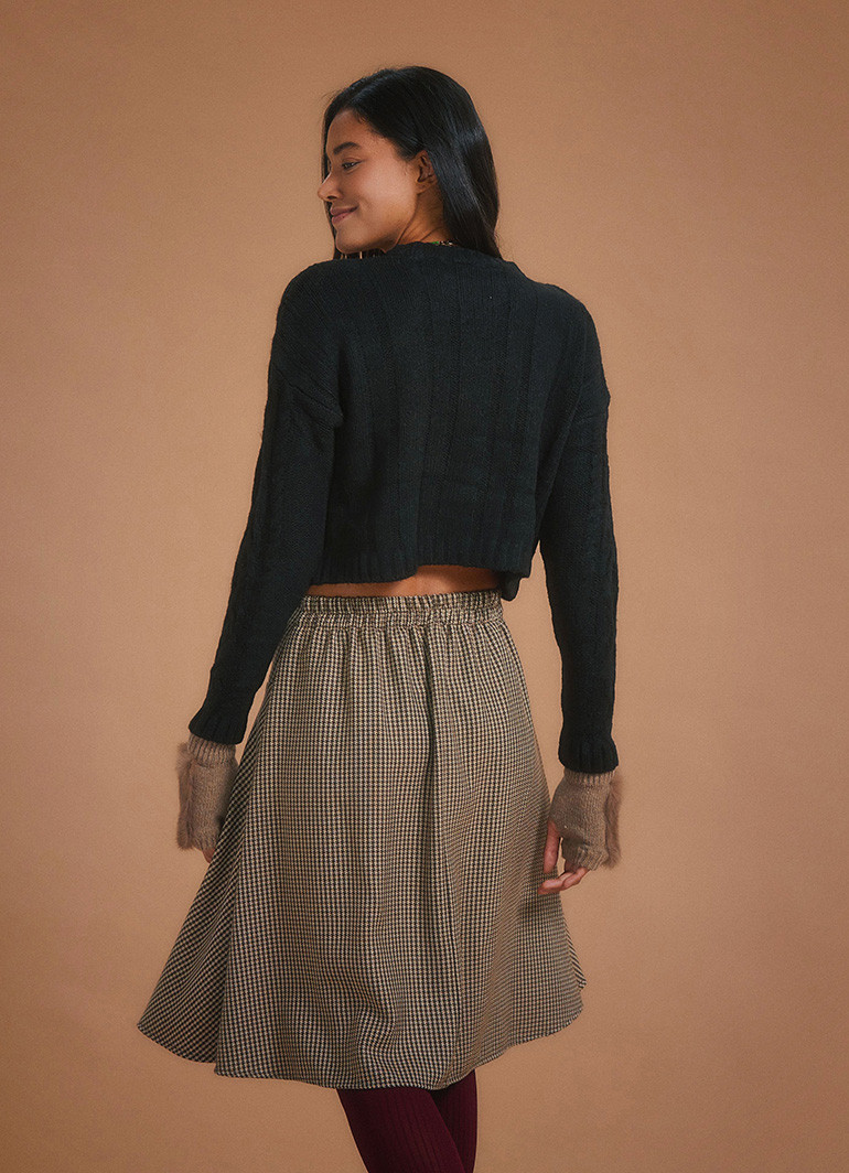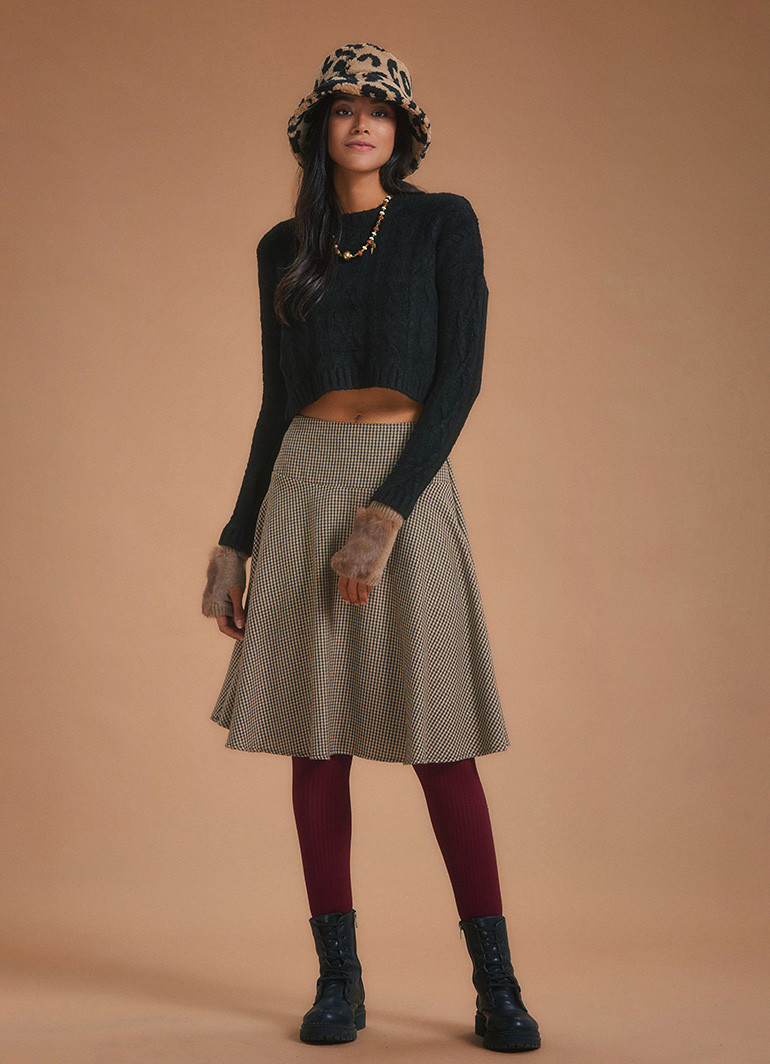 Elastic Waist, Mid Length, Fit and Flare, Houndstooth Skirt