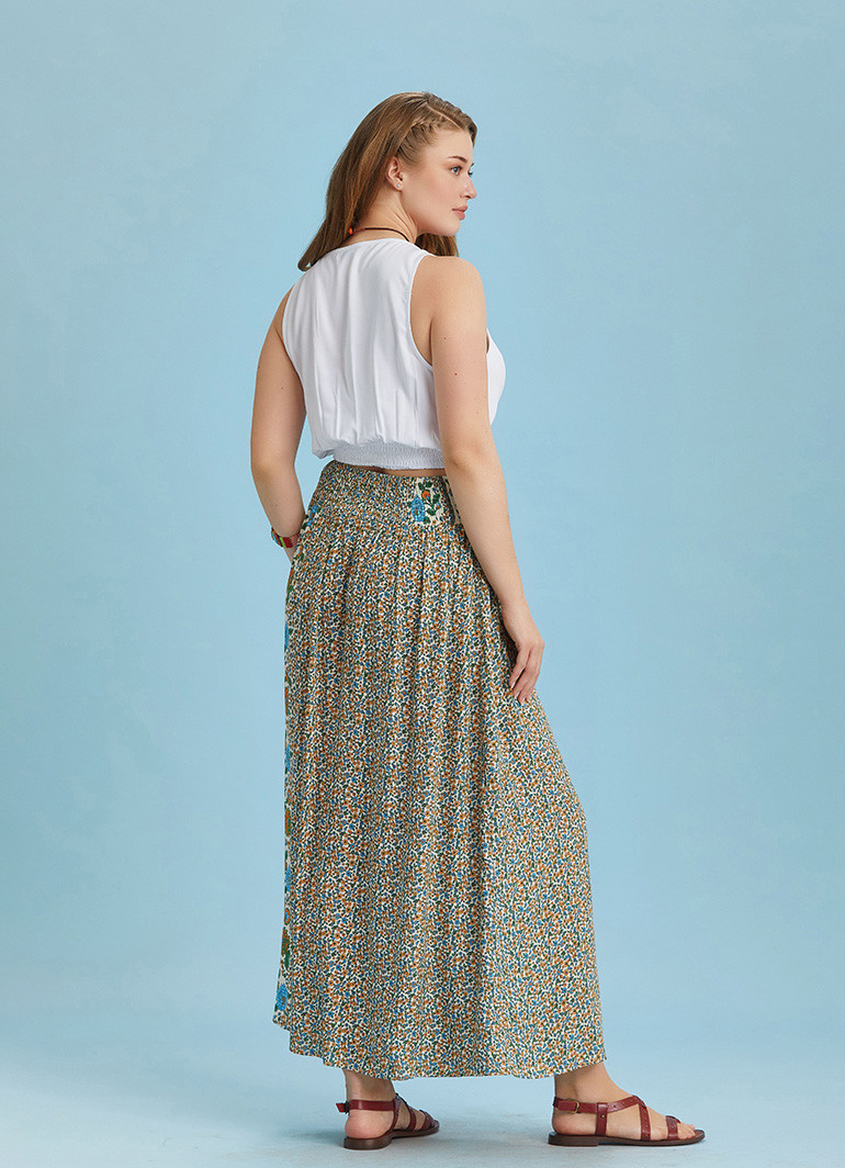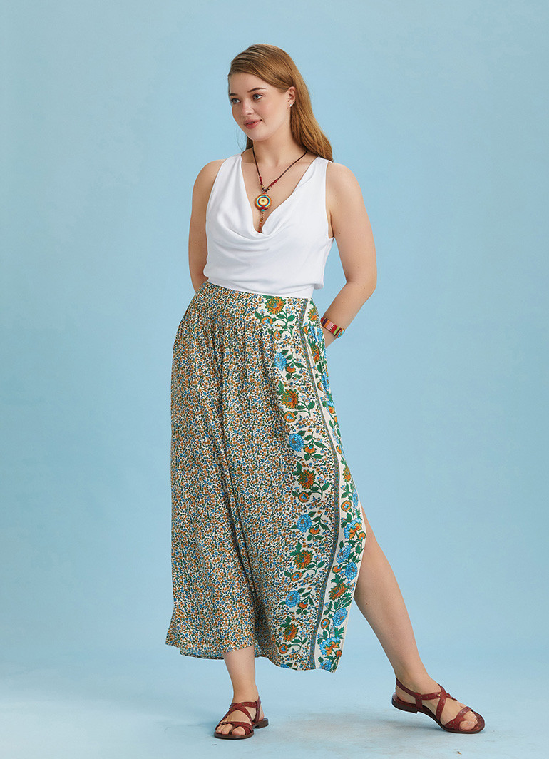 Floral Elastic Waist Side Slit Plus Size Skirt