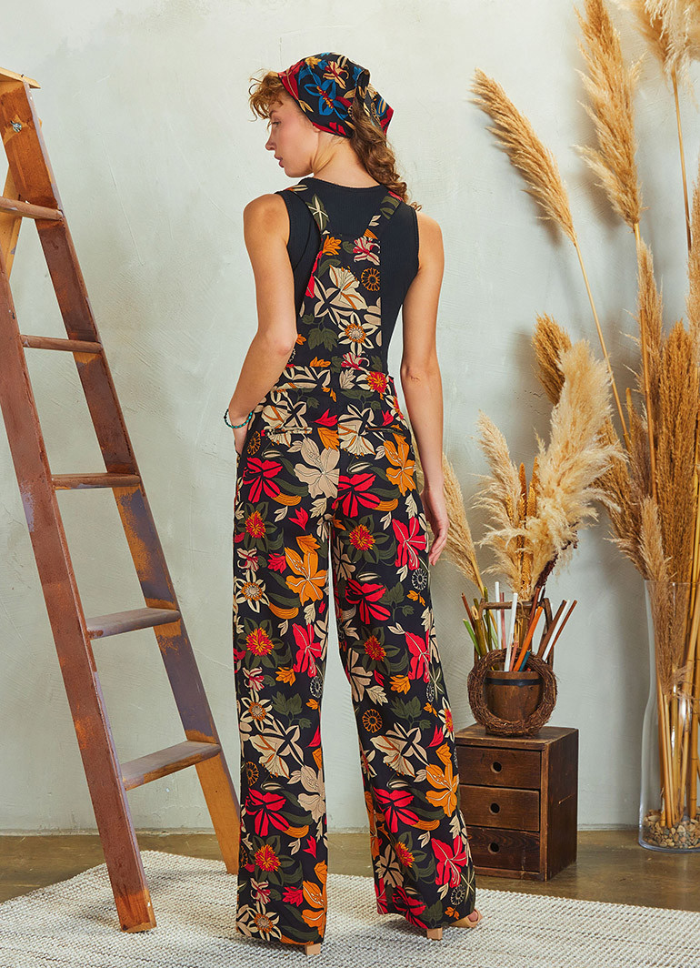 Adjustable Buckle Straps, Hidden Side Zipper, Wide Leg Jumpsuit
