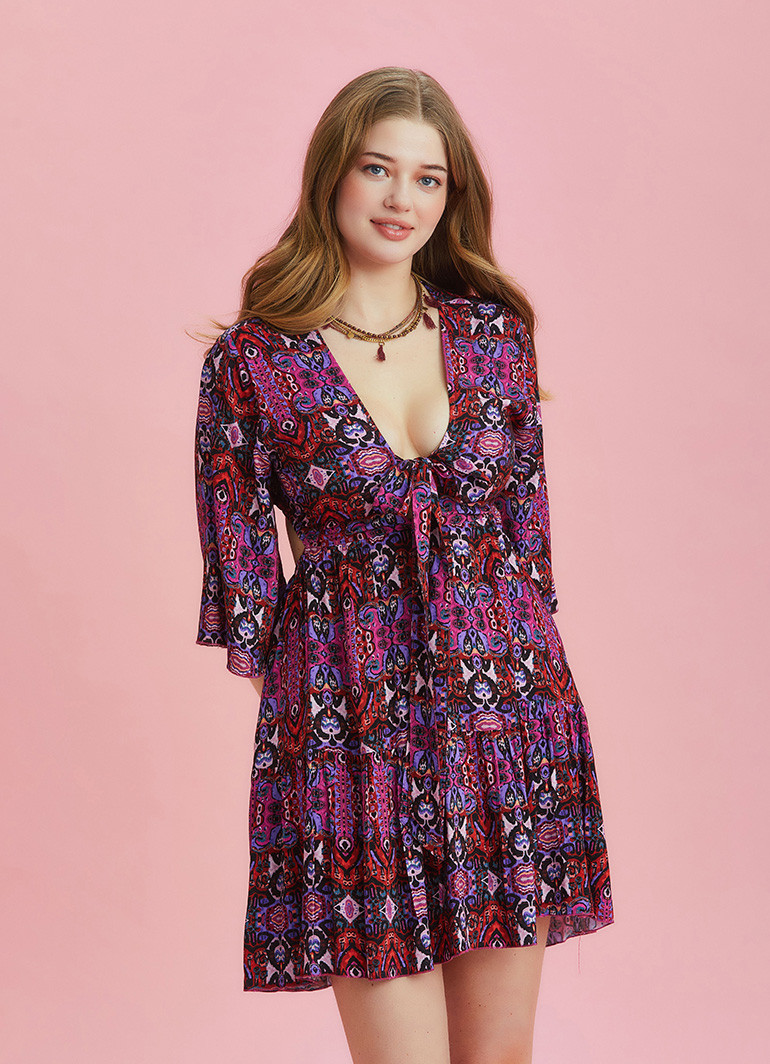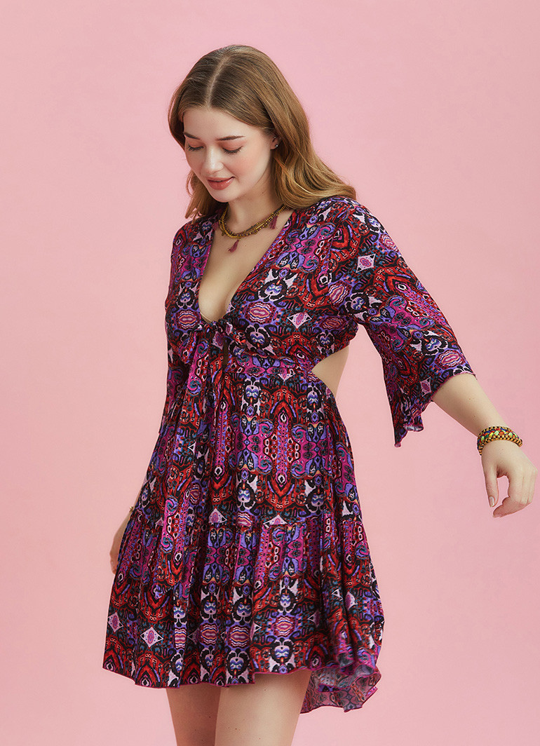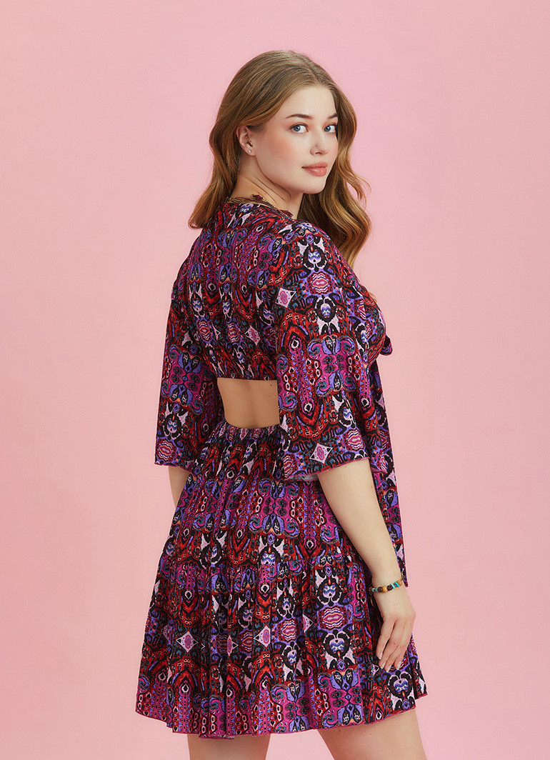 Tie Front V Neckline, Frill Hem, Open Back, Half Sleeve, Short Summer Dress, Plus Size Dress