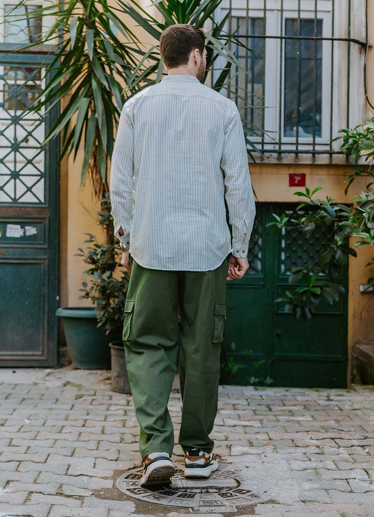Long Sleeve Khaki Striped Men's Cotton Shirt