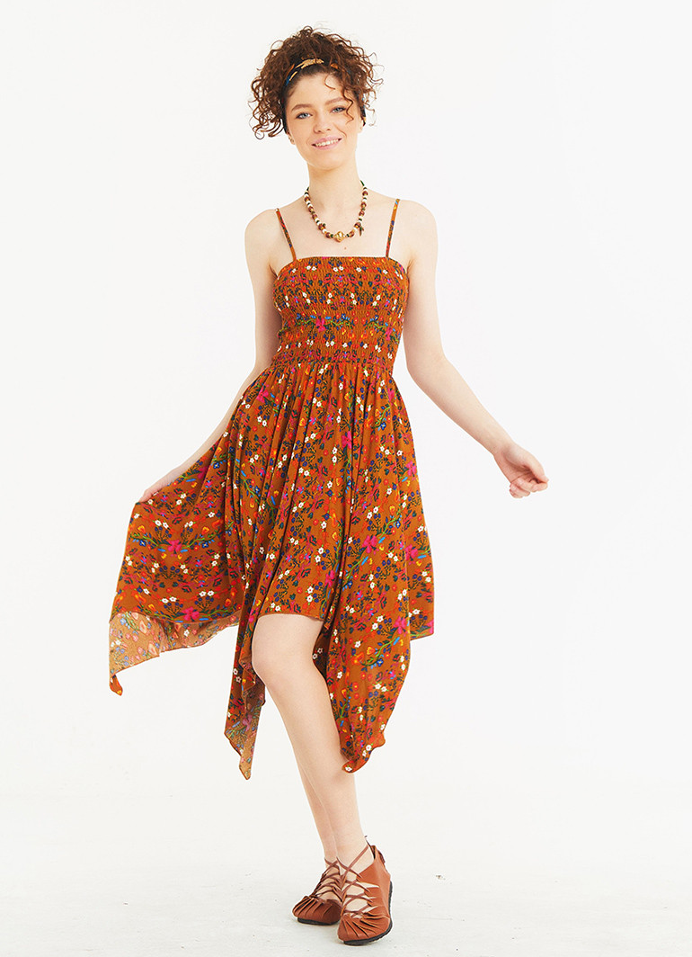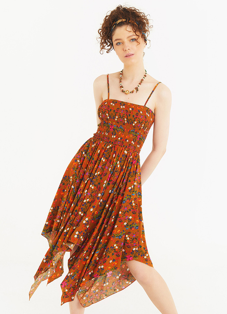 Adjustable Straps, Square Neckline, Hanky Hem Detail, Shirred Sundress