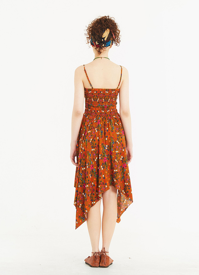 Mustard Floral Square Neck Hanky Hem Sundress
