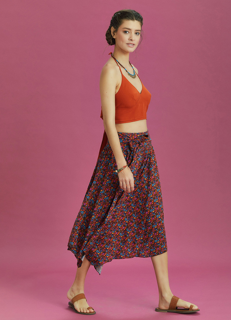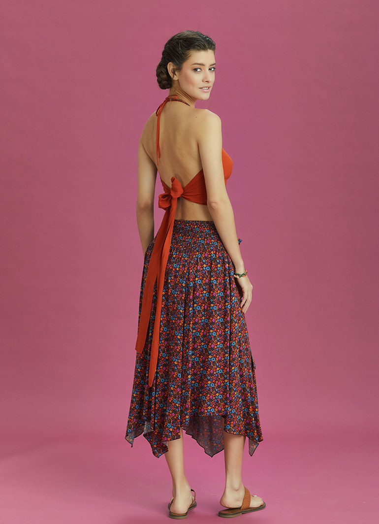 Asymmetrical Hem Detailed, Tie Waist, Boho Style, Flowy Midi Skirt