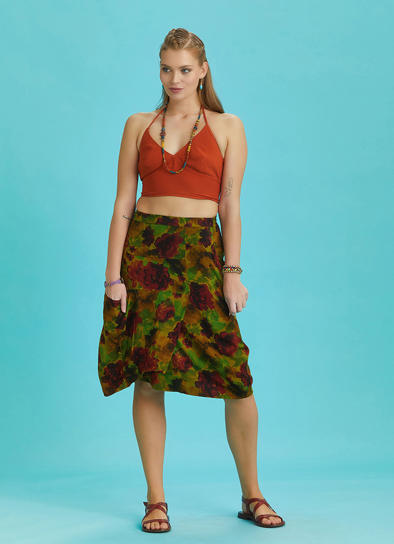 Hidden Side Zipper Closure, Wrap Front Detail, Oversize Pocket, Midi Skirt