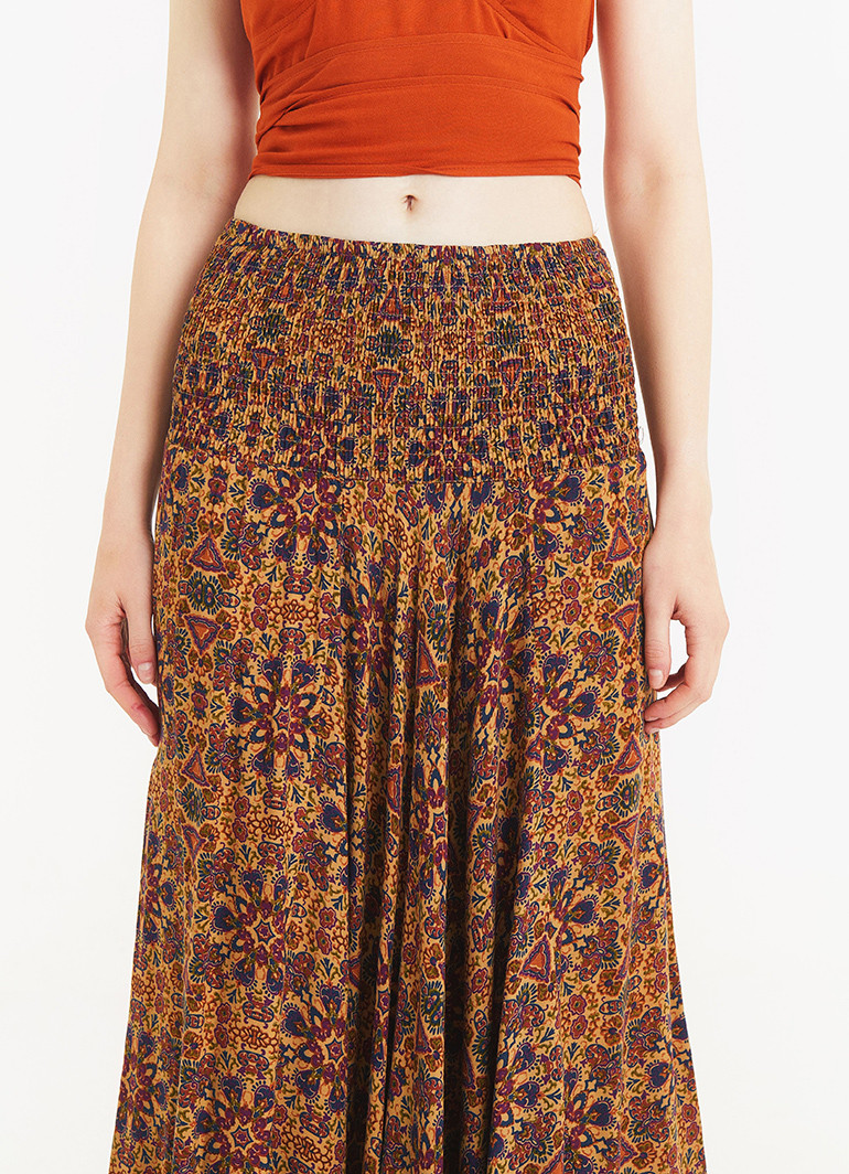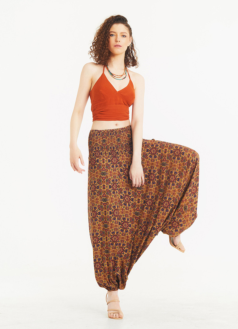 Purple Print Wide Shirred Waist Boho Style Harem Pants