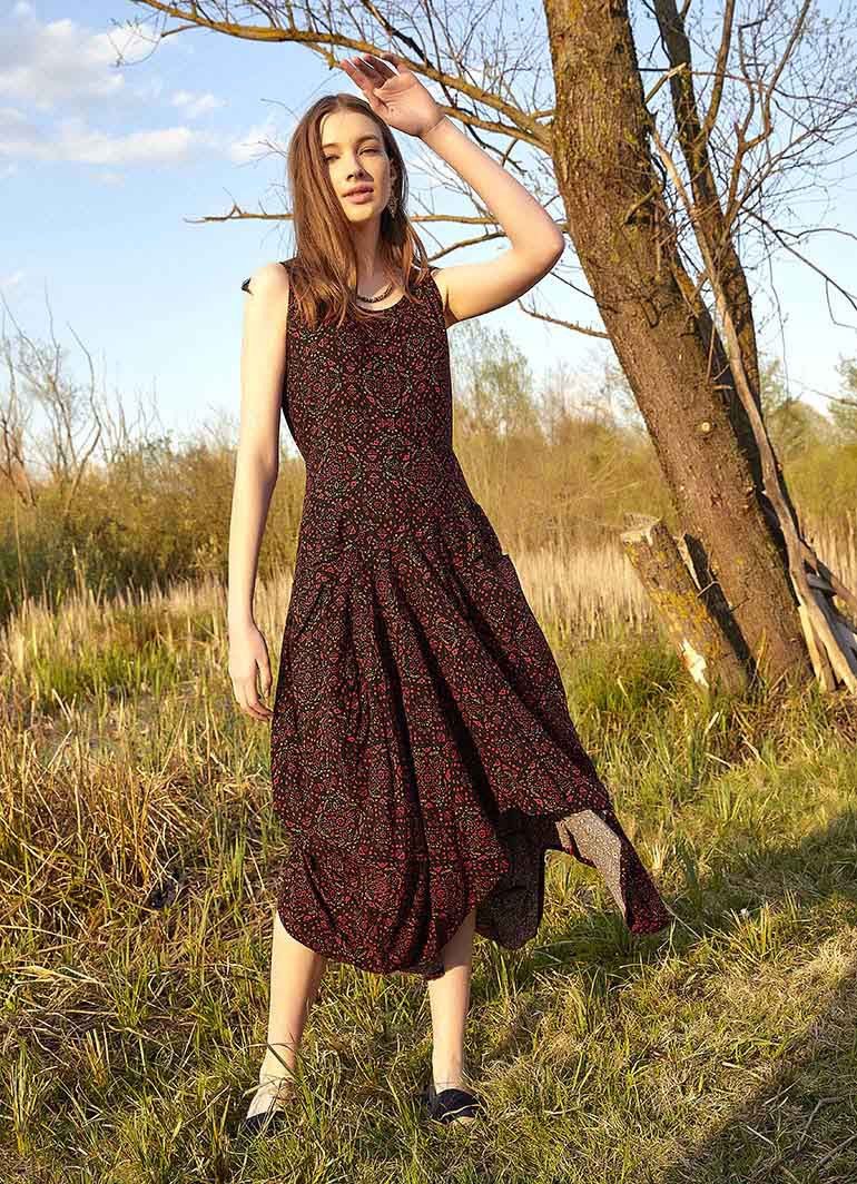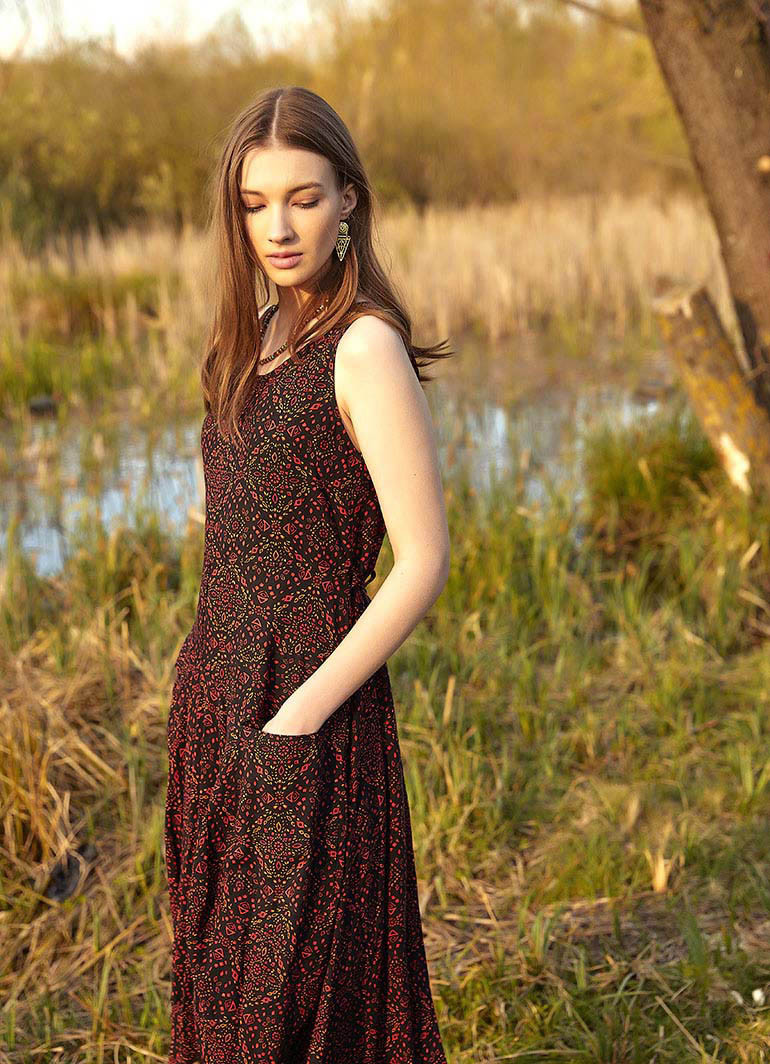 Sleeveless, V Neckline, Pocket Detailed, Paisley Print, Boho Dress