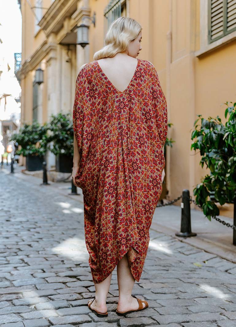 Ethnic Pattern, Bohemian Style, Boat Neck, Shoulder Front, Back Low-cut, Authentic Women's Summer Dress.