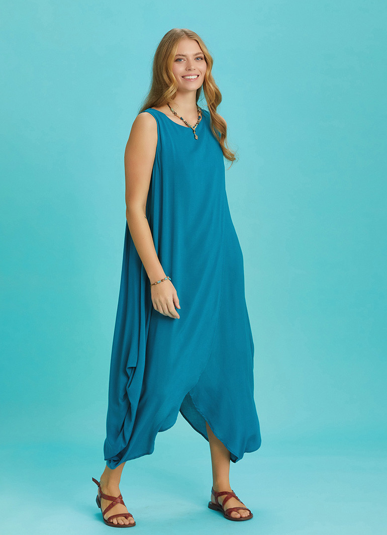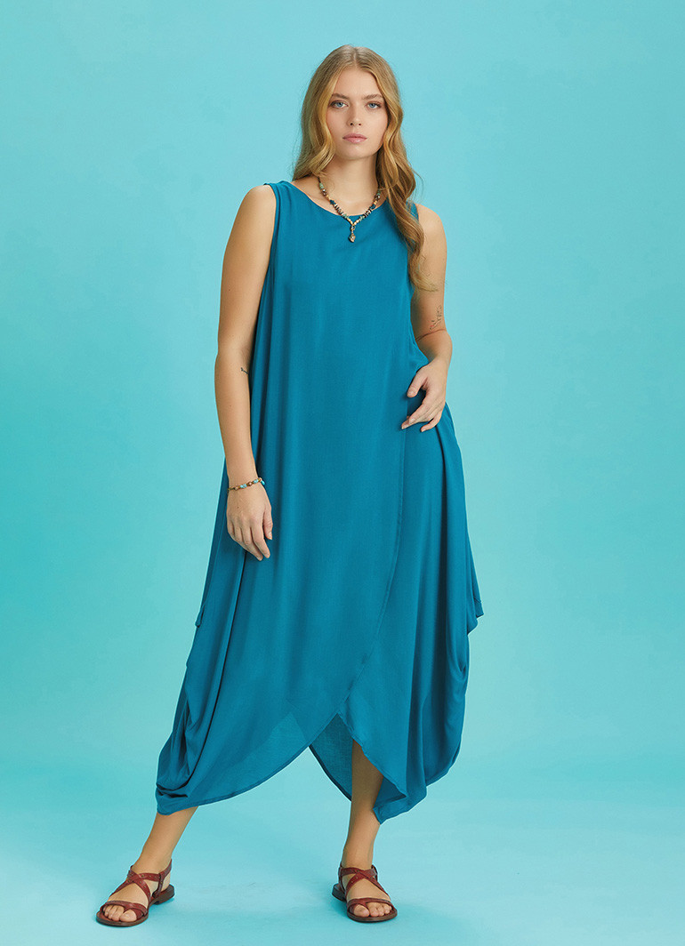 Boat Neck, Diagonal Cut Front Layer Detail, Sleeveless, Baggy Long Dress