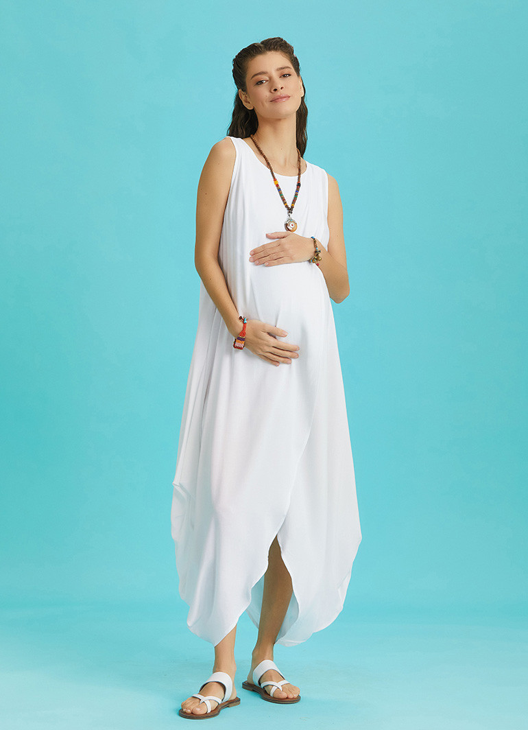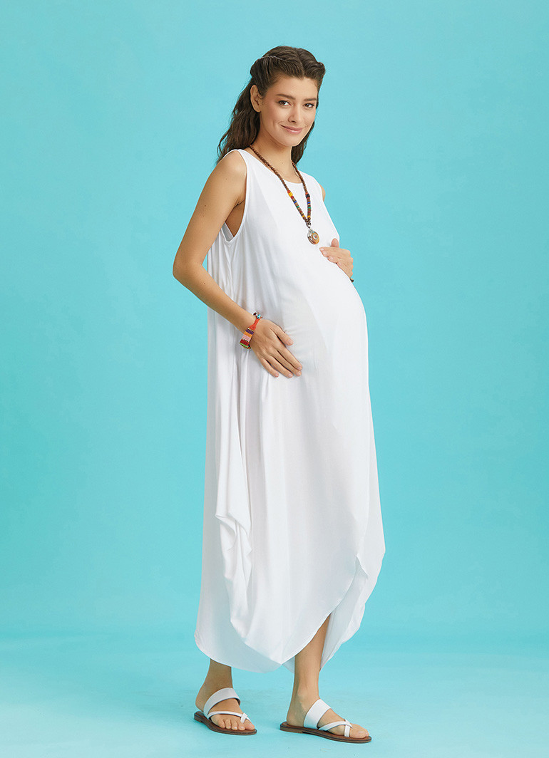 Boat Neck, Diagonal Cut Front Layer Detail, Sleeveless, Baggy Long Dress, Maternity Dress