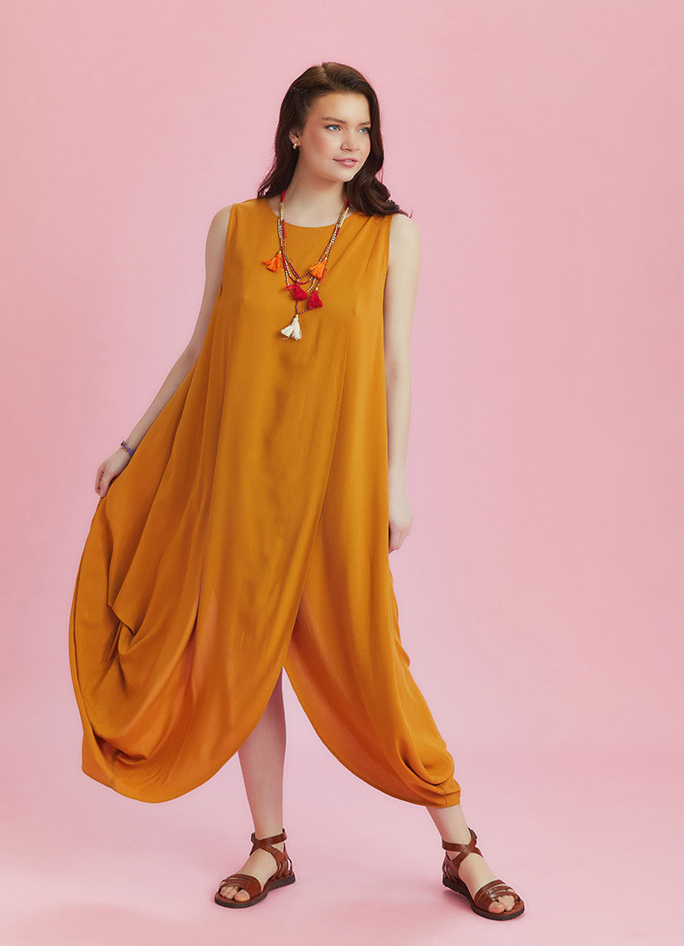 Boat Neck, Diagonal Cut Front Layer Detail, Sleeveless, Baggy Long Dress