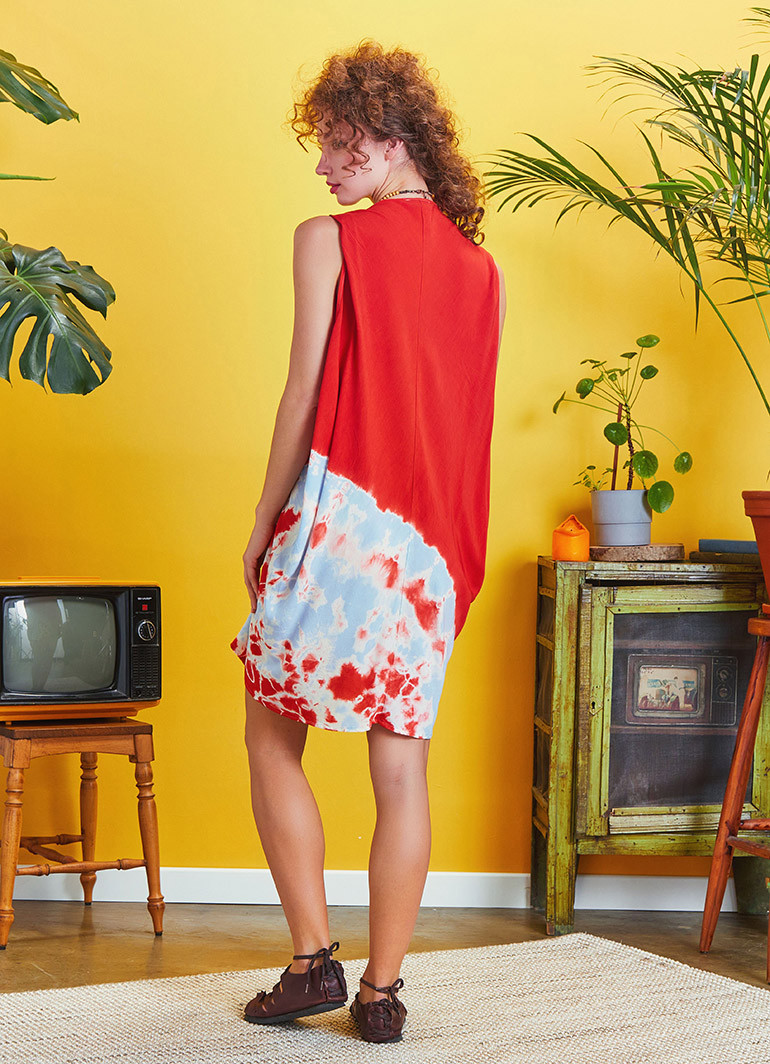 Sleeveless Loose Red Batic Tie Dye Tunic Dress