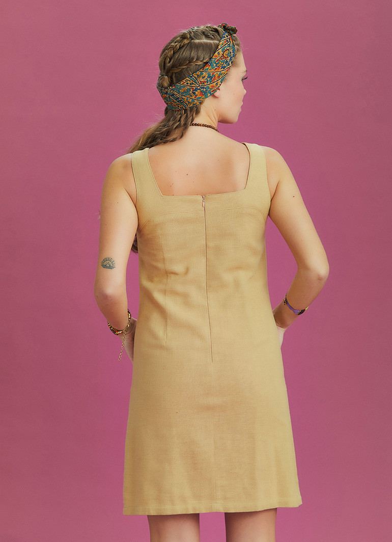 Front Pocket Detailed, Square Neck, Zipper Back Closure, Strappy , Short Dress