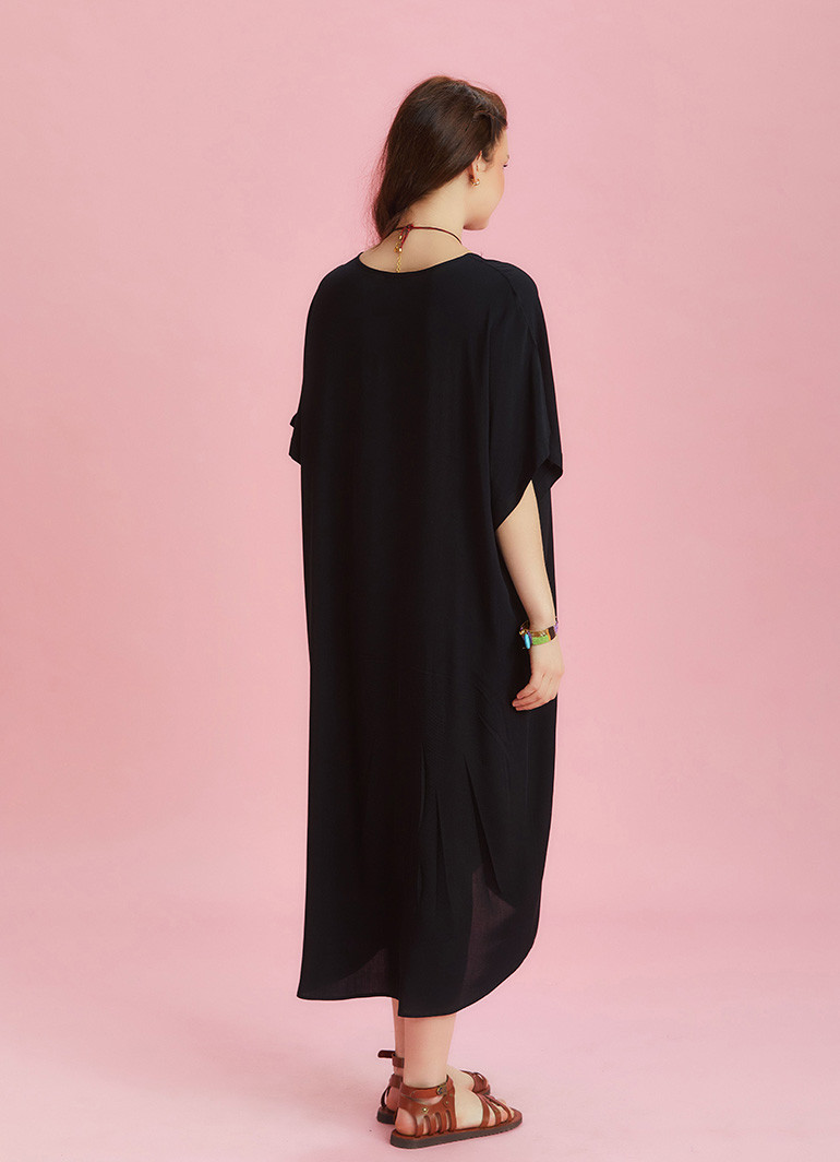 V Neckline, Twist Front Detail, Loose Fit, Half Bat Sleeves, Long Dress