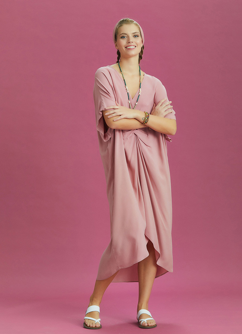 Twist Front Loose Pink Bat Wing Dress