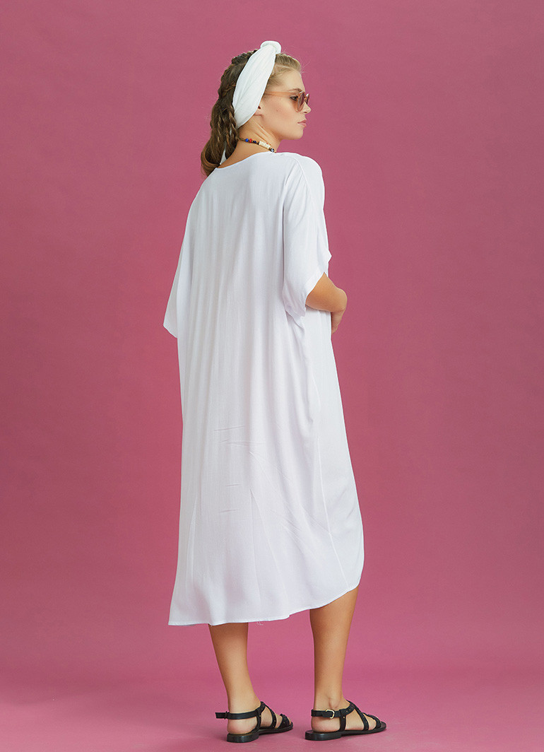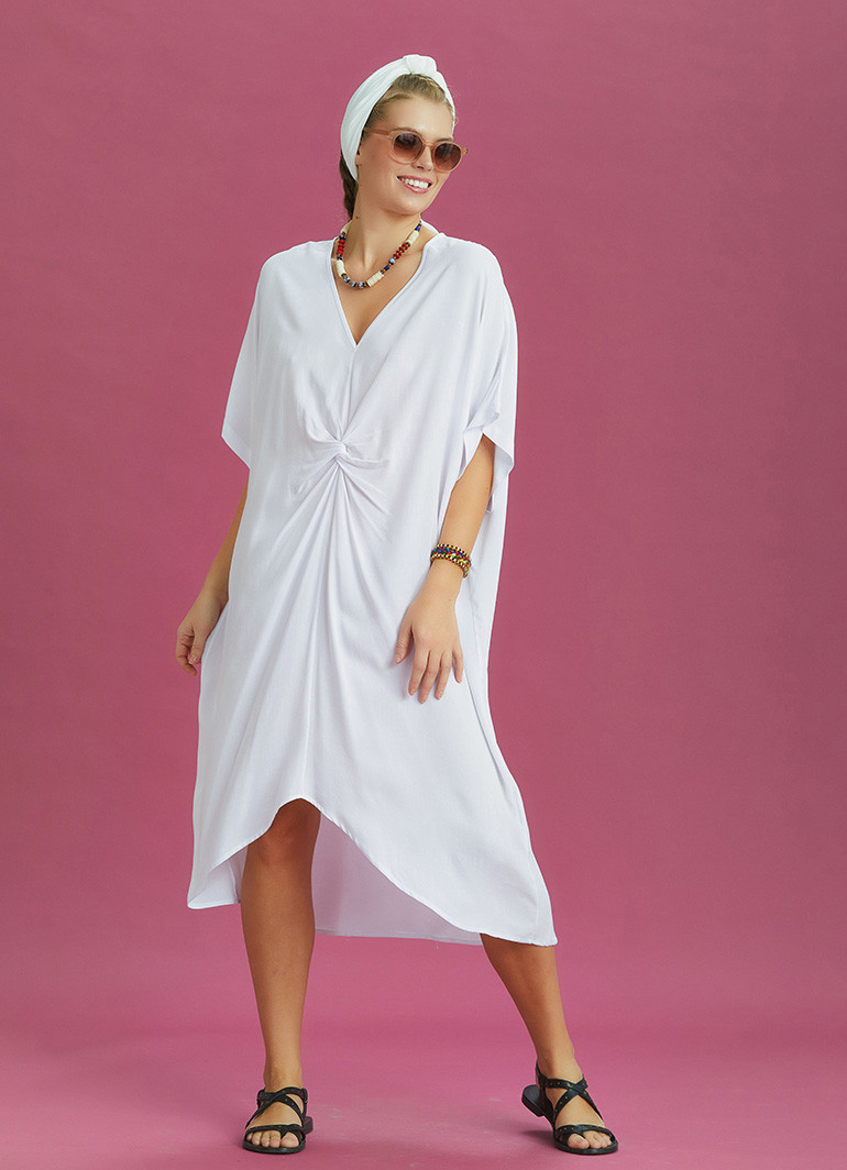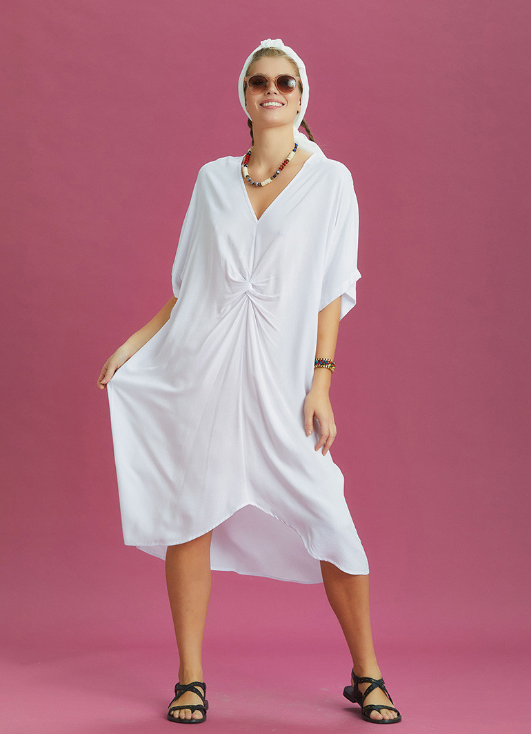 V Neckline, Twist Front Detail, Loose Fit, Half Bat Sleeves, Long Dress