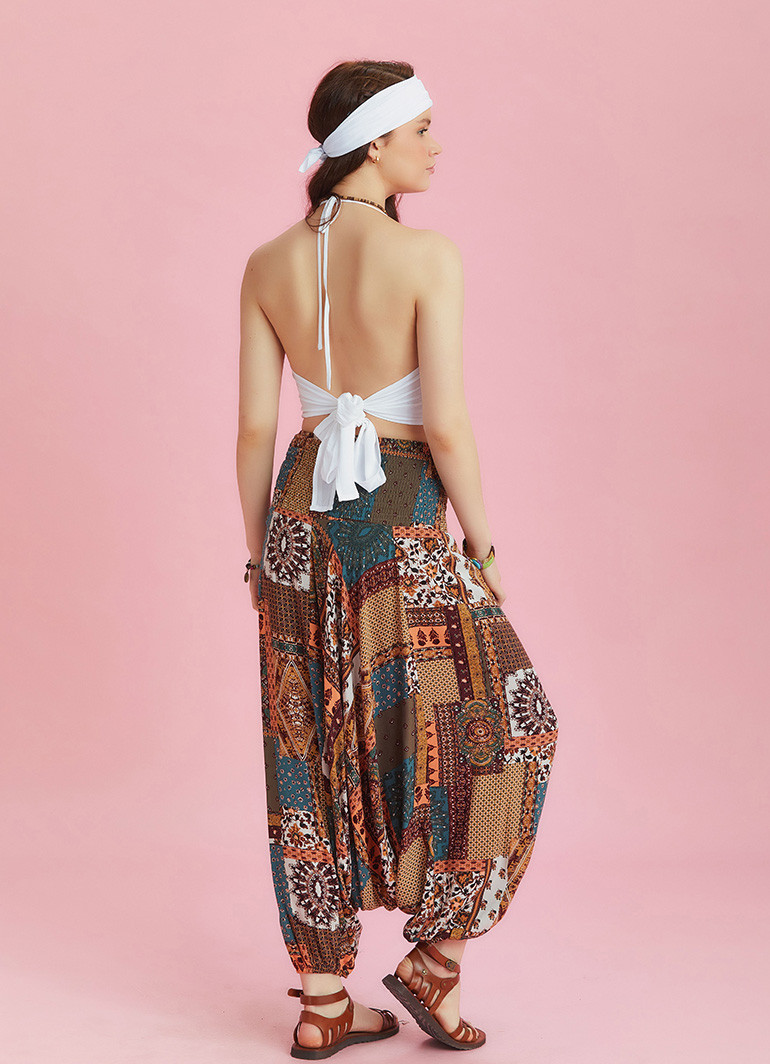 Shirred Elastic Waistband, Elastic Hem, Striped Harem Pants